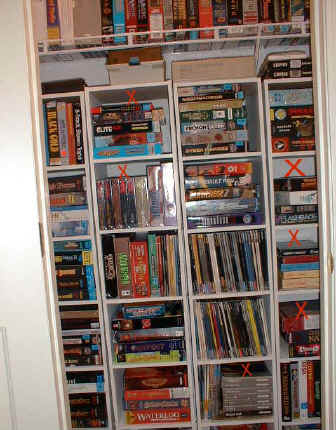 GOTCHA's Game Closet, circa 1997. Red "X's" denoted areas needing filling. South Wing of the Gotcha Museum, Circa 2000. Expanded in 1999.